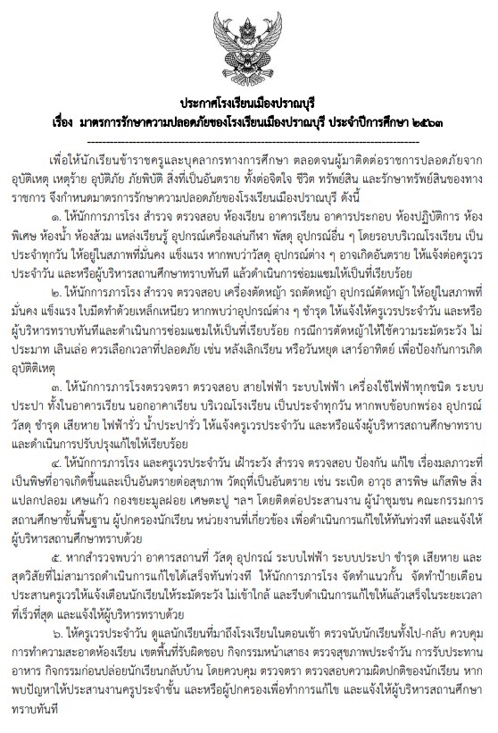 :: ประกาศ เรื่องความปลอดภัยโรงเรียนเมืองปราณบุรีอัพเดตล่าสุดเมือ: 19 มิถุนายน 2564 | เผยแพร่เมื่อ: 12 พฤษภาคม 2563 | เขียนโดย kroonoh | จำนวนผู้เข้าชม : 1940 ประกาศ 12 พ.ค2563 ประกาศเรื่องความปลอดภัยโรงเรียนเมืองปราณบุรี