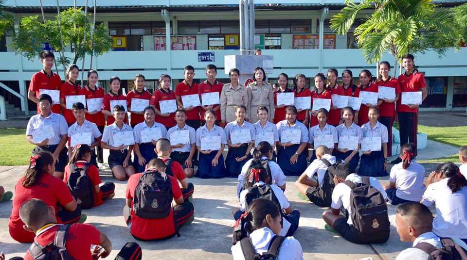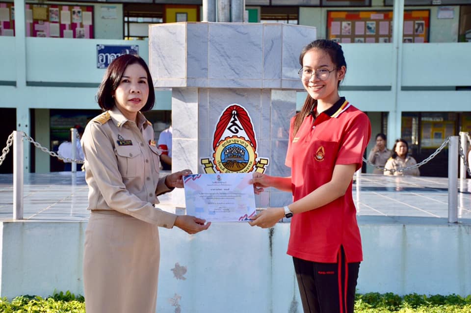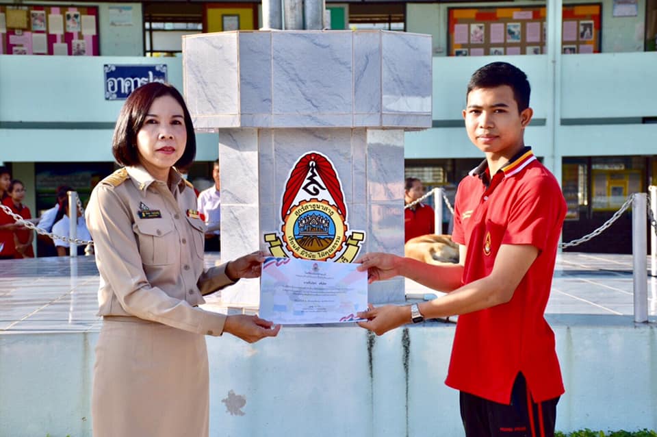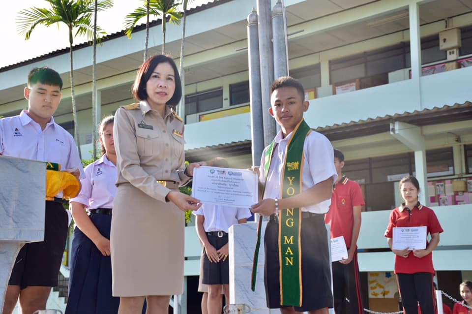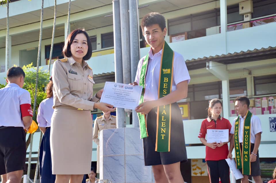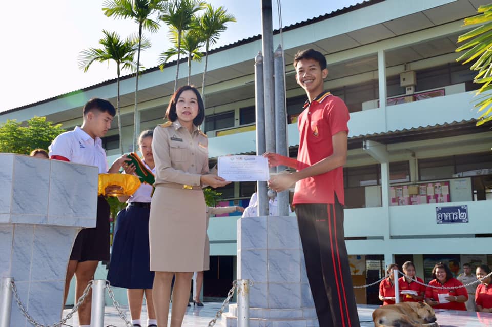 กิจกรรมหน้าเสาธง ท่านผู้อำนวยการโรงเรียน ยกย่องชมเชย มอบเกียรติบัตร สายสะพาย ให้กับนักเรียนที่ได้รับรางวัล การประกวด Youth of the Future Thailand 2019 : Prachuap Kirikhan และมอบเกียรติบัตร ให้กับ คณะกรรมการสภานักเรียน ปีการศึกษา 2561