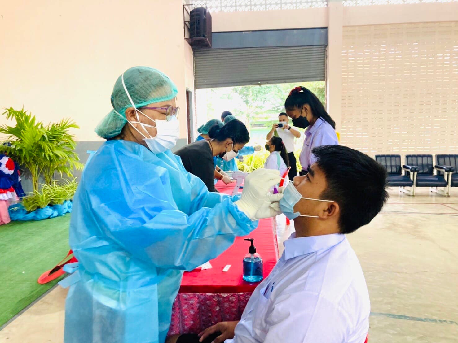 :: ตรวจ ATK ให้กับนักเรียนระดับชั้นมัธยมศึกษาตอนปลายอัพเดตล่าสุดเมือ: 01 ธันวาคม 2564 | เผยแพร่เมื่อ: 01 ธันวาคม 2564 | เขียนโดย kroonoh | จำนวนผู้เข้าชม : 1642 โรงเรียนเมืองปราณบุรี เปิดเรียน On-site ภาคเรียนที่ 2/2564 โดยในวันที่ 1 ธันวาคม 2564 ได้รับความอนุเคราะห์ จากโรงพยาบาลส่งเสริมสุขภาพตำบลปราณบุรี มาตรวจหาเชื้อ COVID-19 ด้วยชุดตรวจ ATK ให้กับนักเรียนระดับชั้นมัธยมศึกษาตอนปลาย ผลตรวจนักเรียนทุกคนมีผลเป็นลบ ไม่พบเชื้อ เพื่อความปลอดภัย ของนักเรียน ครู และบุคลากรทุกคน