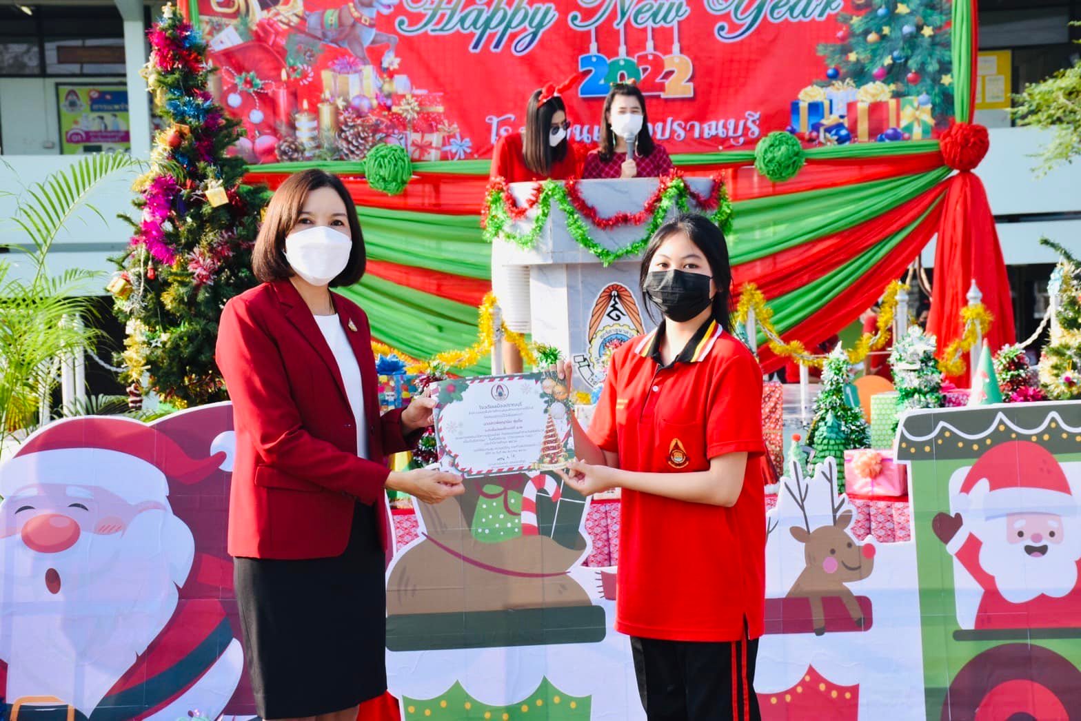 วันที่ 24 ธันวาคม 2564 กลุ่มสาระการเรียนรู้ภาษาต่างประเทศ โรงเรียนเมืองปราณบุรี จัดกิจกรรม Merry Christmas & Happy New Year 2022 ผู้บริหาร คุณครู ซานตาคลอส มอบของขวัญ รางวัลเกียรติบัตร ส่งความสุขให้กับนักเรียน ที่เข้าร่วมกิจกรรมบรรยากาศเป็นไปด้วยความสนุกสนาน ณ ลานเอนกประสงค์หน้าเสาธง ![]()
