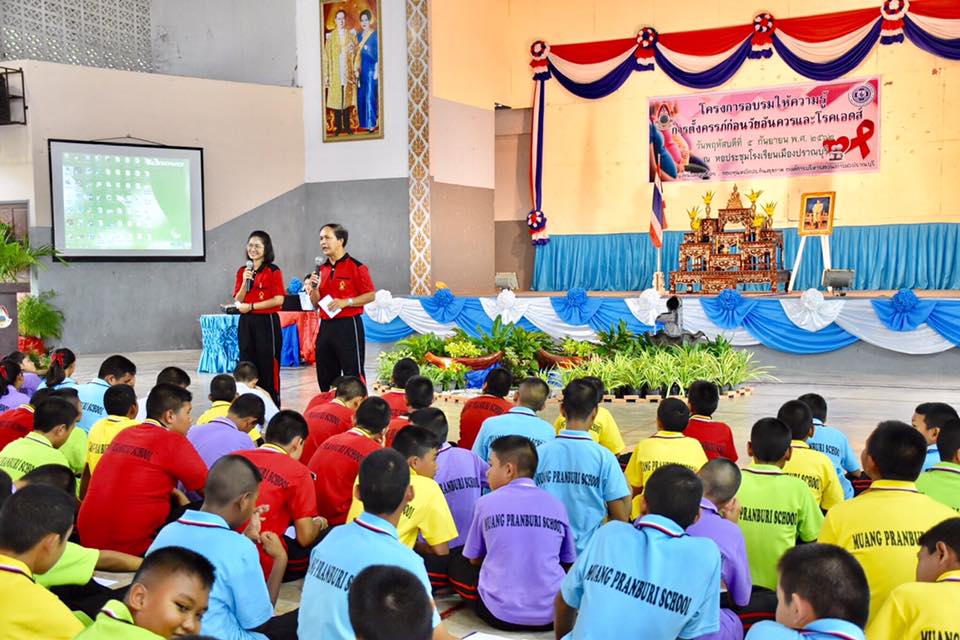 :: อบต.ปราณบุรีจัดอบรม ให้ความรู้นักเรียน เรื่องการตั้งครรภ์ก่อนวัยอันควร และโรคเอดส์